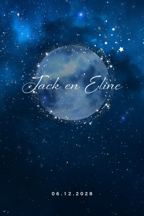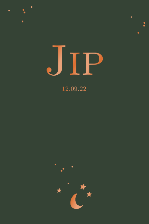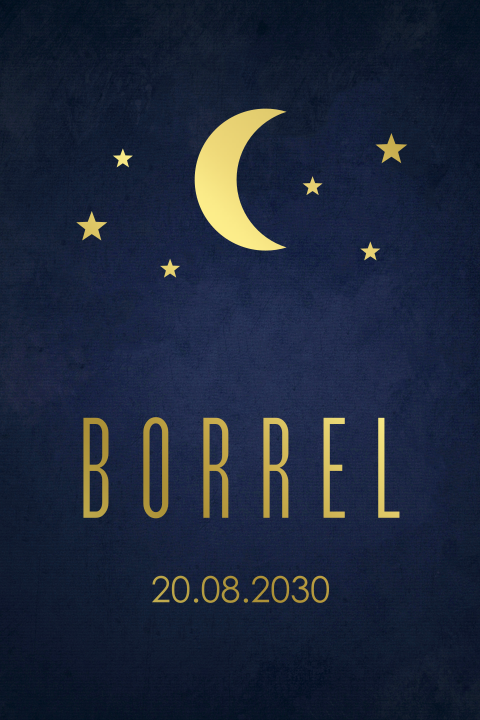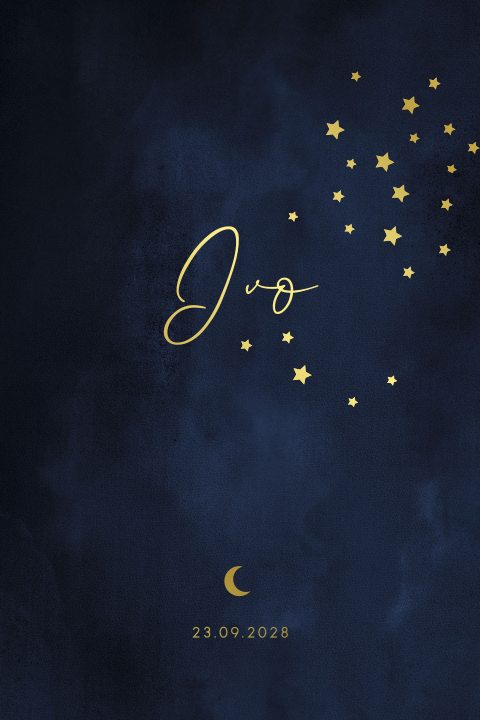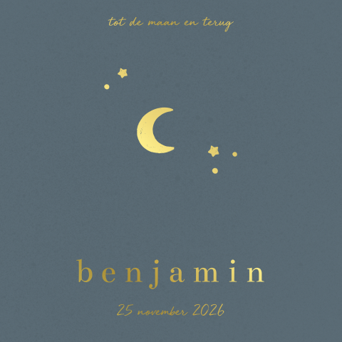 Unisex geboortekaartje met goudfolie en maan en sterren
